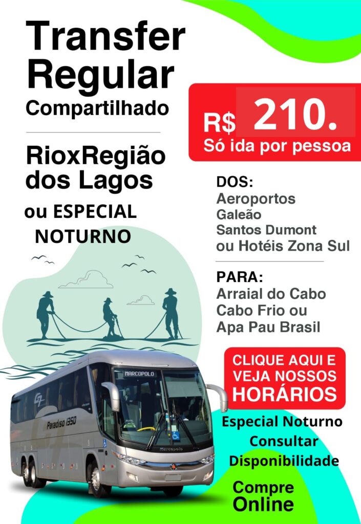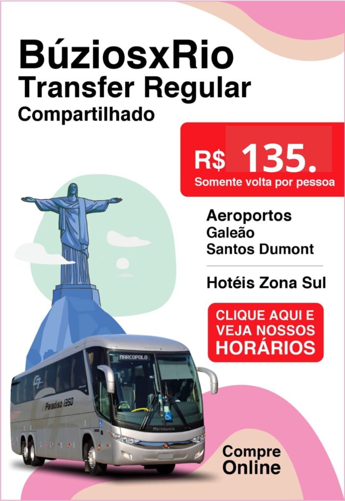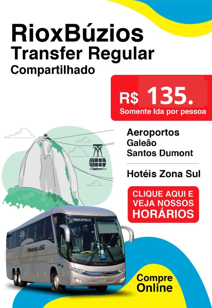 O transfer leva os passageiros dos aeroportos até seu hotel ou pousada em Armação dos Búzios, Arraial do Cabo, Cabo Frio, Rio de janeiro, Angra dos Reis ou San Pedro de Aldeia.